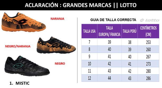 Se adjunta la guía de tallas correcta de la marca LOTTO.