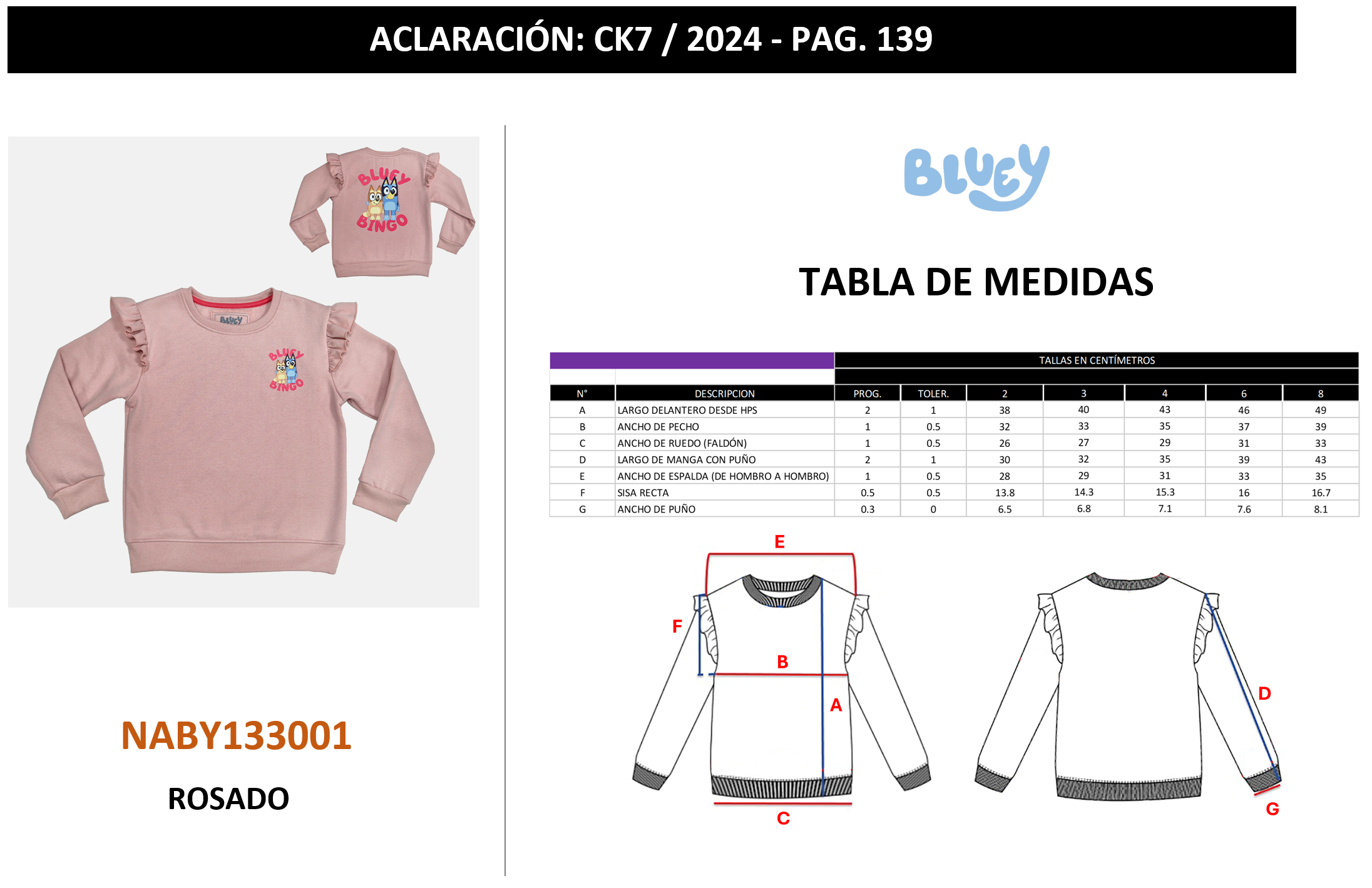 NABY133001 || GUIA DE TALLAS || ACLARACIÓN Se envía la tabla de medidas del modelo NABY133001 color ROSADO.