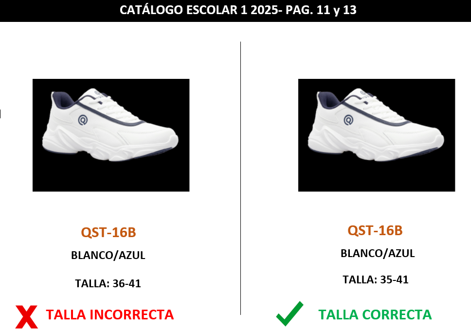QST-16B || FE DE ERRATAS || QUEST || ESCOLAR 1 - 2025 Se envía la actualización del producto (talla correcta) QST-16B.