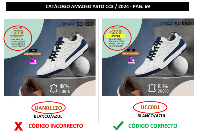 UCC001 || AMADEO ASTO CC3 || FE DE ERRATAS Se realizó el fe de erratas del modelo UCC001 en color BLANCO/AZUL con el código correcto.