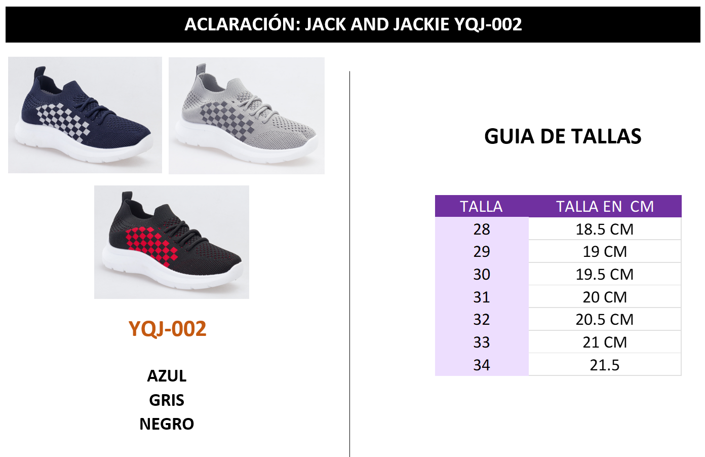YQJ-002 || Guía de tallas || Aclaración Se adjunta la guía de tallas del modelo JACK AND JACKIE YQJ-002